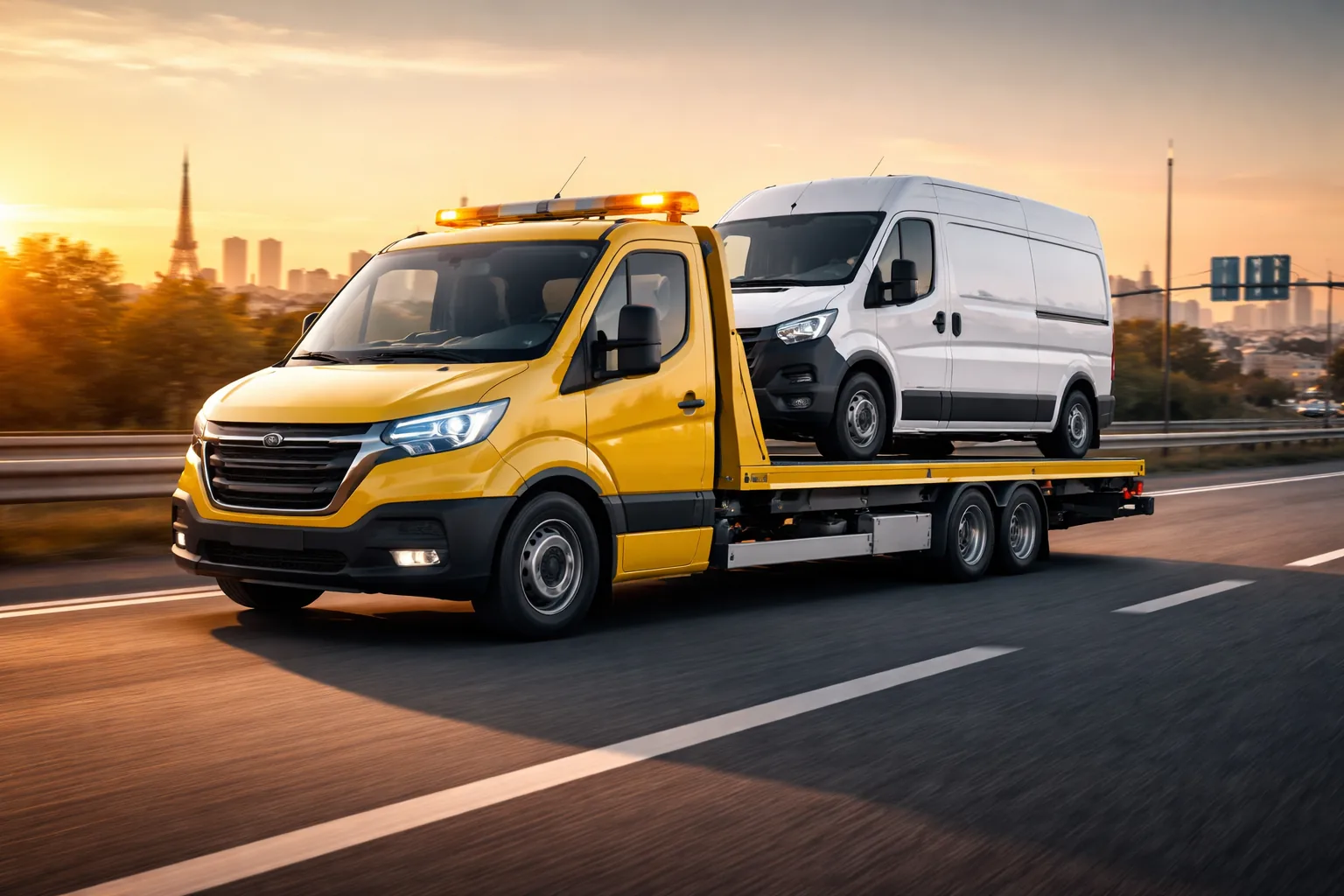 Ines Transport (également appelée Ines Remorquage) assure dépannage, remorquage et transport de véhicules professionnels volumineux en Île-de-France. Nous traitons chaque appel avec une vraie expertise gabarit : fourgons, utilitaires, camionnettes, VUL entreprise et 20 m³. Réponse directe, sans promesses irréalistes.